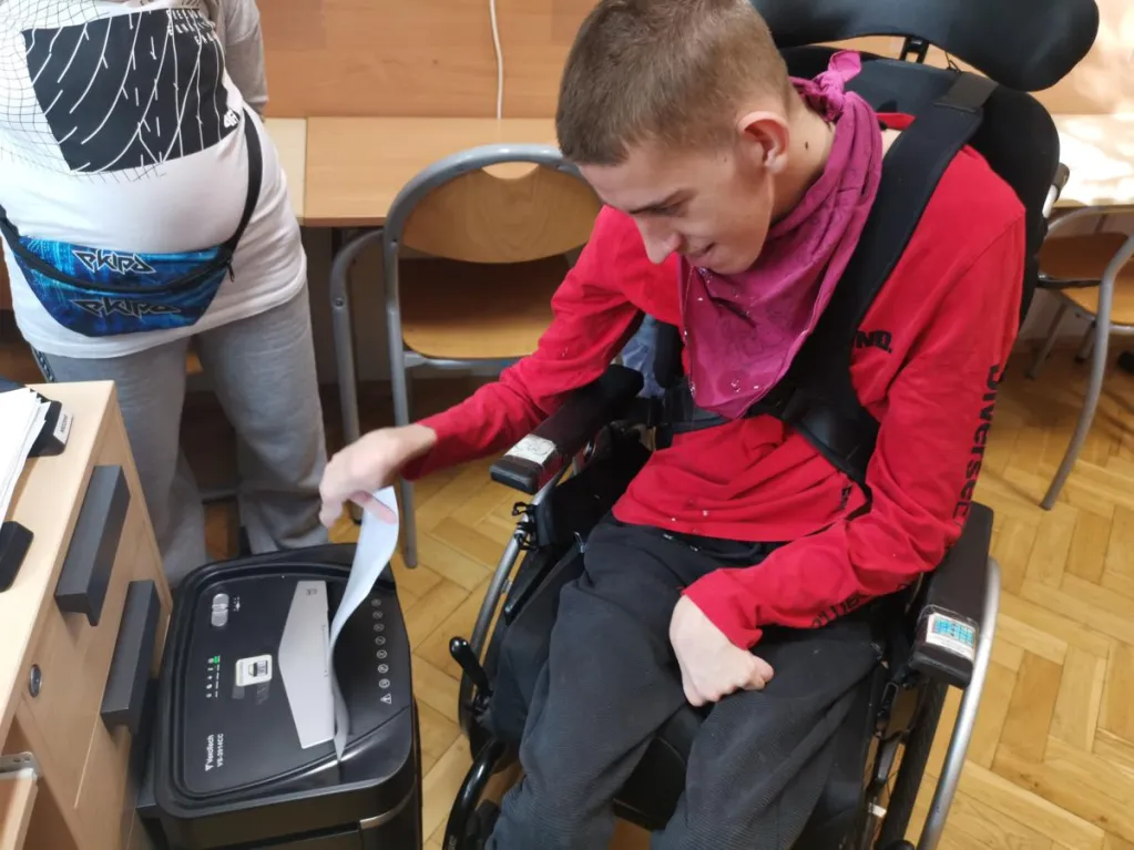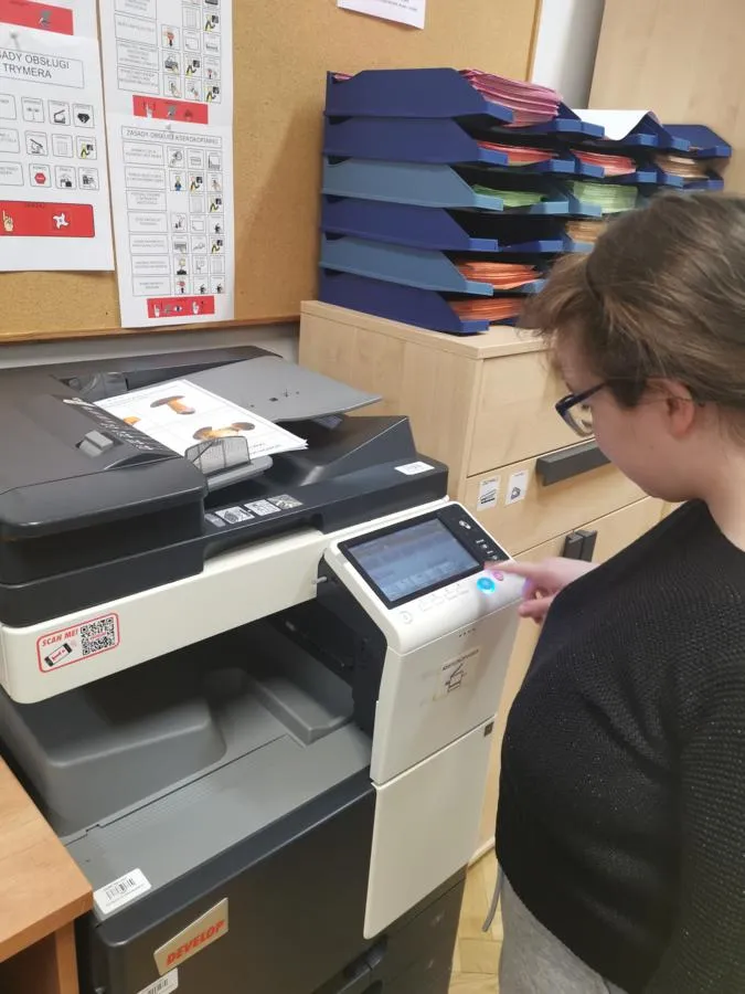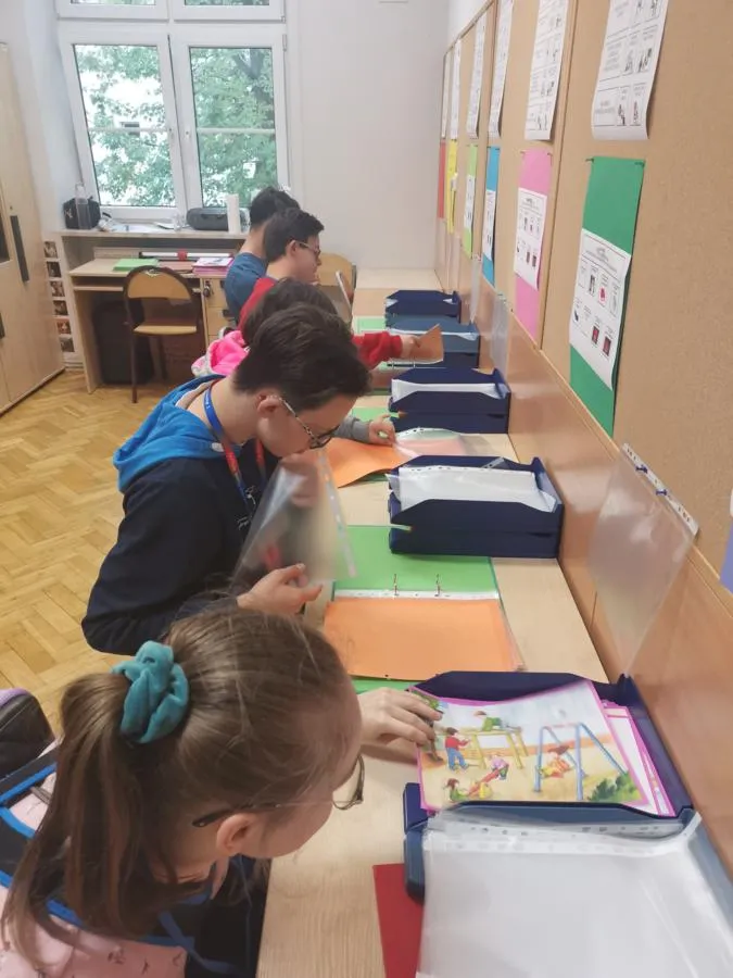 Podczas każdej lekcji uczniowie organizują swoje stanowisko pracy: przygotowują identyfikatory, rozstawiają przyborniki biurowe, podpisują listę obecności. Uczą się segregować dokumenty w przegródkach biurowych, wkładać do segregatorów, obsługiwać zszywacz, dziurkacz, rozszywacz i trymer oraz wielu innych czynności.